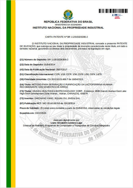 Стандарт:Patent Номер:112015026306-2 Дата выдачи:2020-12-29 Выпущен К:INSTITUTO NACIONAL DA PROPRIEDADE INDUSTRIAL |