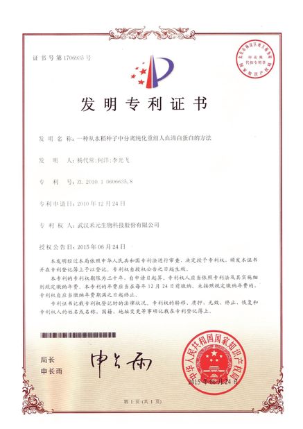 Стандарт:Patent Номер:ZL200610019285.9 Дата выдачи:2010-06-30 Выпущен К:China Patent Office |