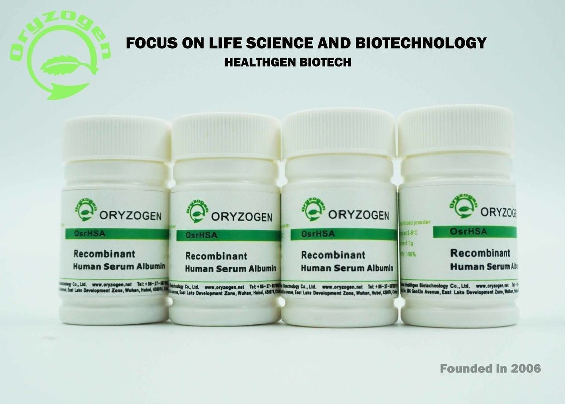 Рекомбинатное человеческое albummin сыворотки (OsrHSA) выведено от зерна риса, которое животный компонент свободно и может обеспечить стабильные поставки. Было продемонстрированы, что сложено в идентичную структуру и имеет OsrHSA идентичную функцию как альбумин сыворотки плазмы человеческий (pHSA), так же, как идентичную иммуногенность. В настоящее время, OsrHSA может быть превосходной альтернативой к pHSA в био-промышленном применении, как свободные от xeno культурные среды клетки, вакцина, медицинские службы, клеточная терапия, небольшая молекулярная несущая и другие био-фармацевтические применения.
